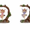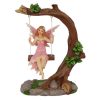 Beautiful fairy figurine sitting on a swing. Choice of purple or pink fairy. Measures 14cm high. Suitable for indoor or outdoor use.