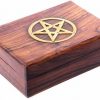 This Sheesham Wood Trinket Box with Pentagram Inlay 15 x 10cm is a must have item, made from Sheesham wood, a hard Rosewood indigenous to India, and comes from renewable forest plantations.